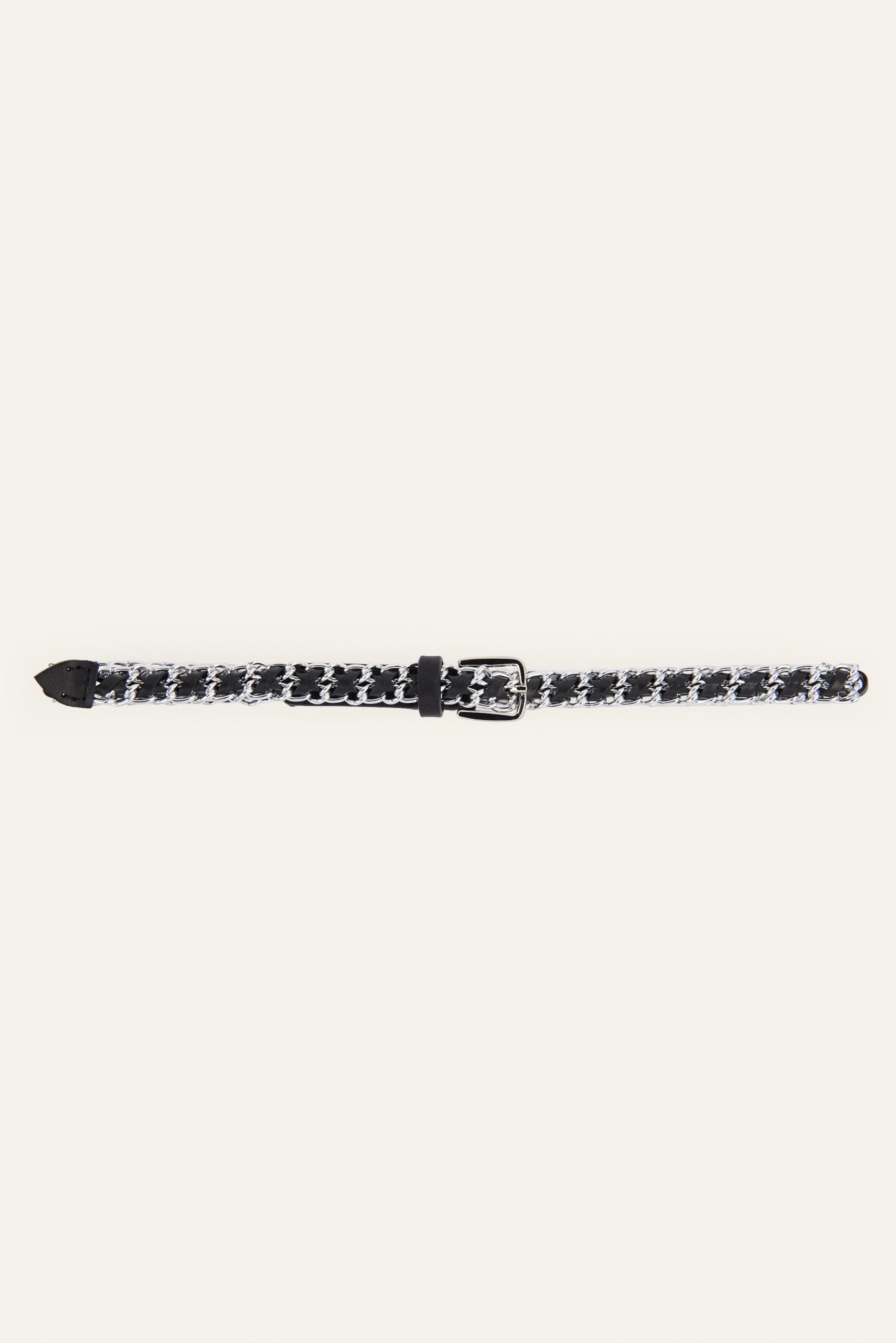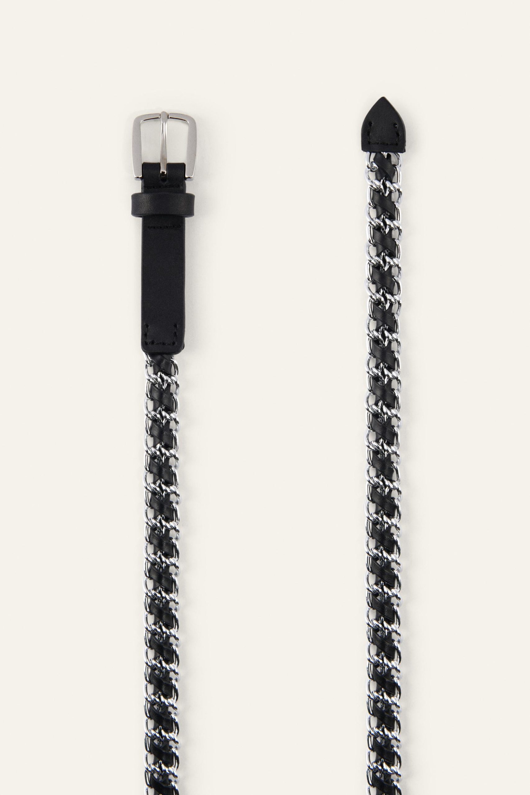When it has to be original, then reach for our BROOKE belt. Made in Spain, this ba&sh belt is designed from a stunning mix of leather and metal. Resembling a chain link, it features leather straps braided inside metal for a style that is both irresistible and unique. 2 cm (0.8 in.) wide, this belt can be slipped into the loops of your pants or worn with a dress to bring out your waist. Pair it with a black pantsuit for an unforgettable look! – Leather and metal belt- Metal mesh style look- Leather braiding