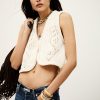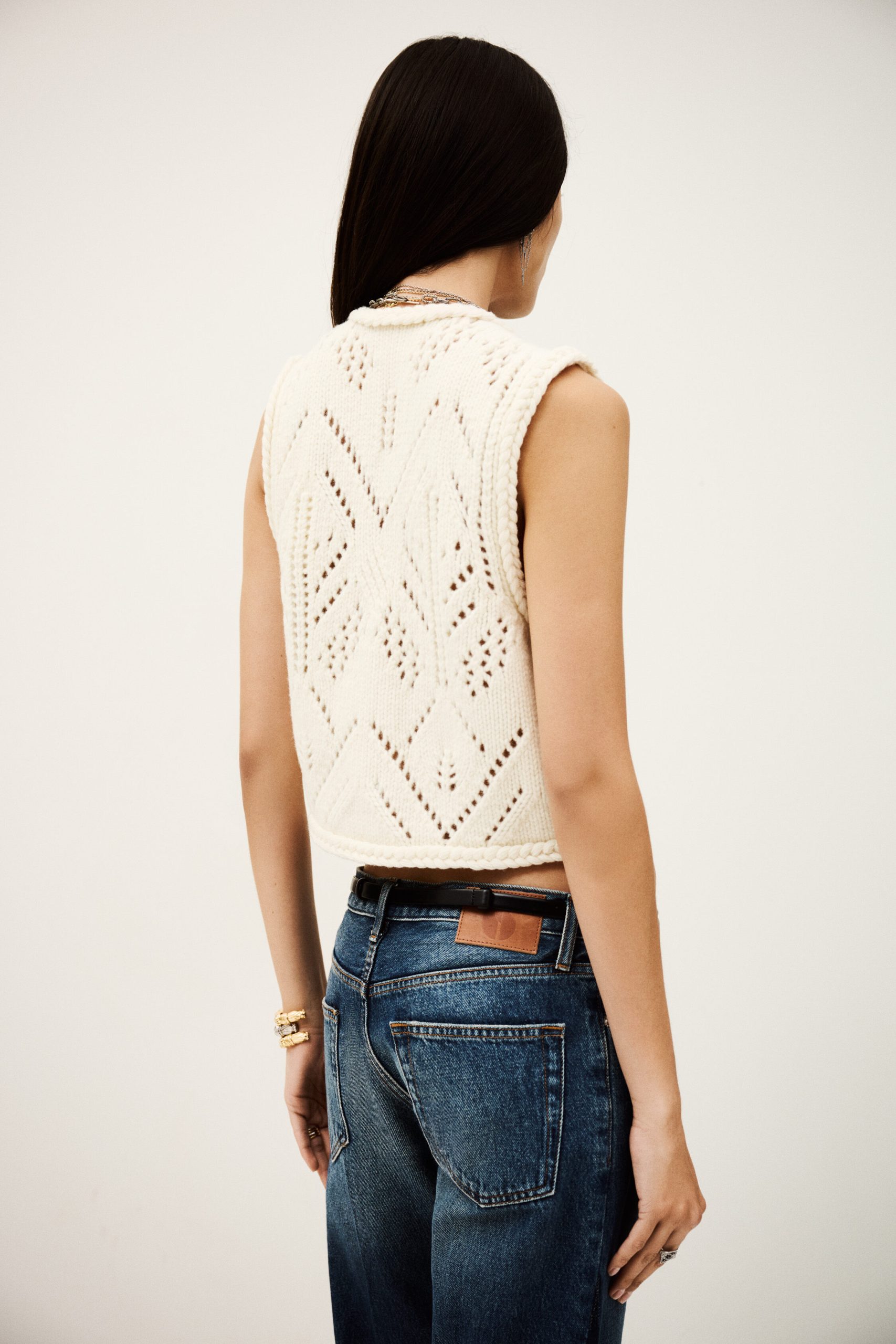 – Sleeveless cut- Openwork pointelle knit- Braided detail at the neckline and armholes- Drawstring tie at the front, in the centre- Perfect for layering- Made in Italy