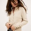 – Slim fit- Round collar- Long fitted sleeves- Ruffled at wrists- Ribbed hem and sleeve cuffs- Jersey knitThe wool in this model comes from a certified supply chain that ensures animal welfare and sustainable pasture management.