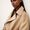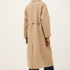 The ba&sh KATE coat is a key piece this season. This long coat has minimalist style, a shirt collar, slightly dropped shoulders, and piped pockets. It hits below the knees. It’s made in a double-sided wool clothand it has a tie belt in the same fabric that slips through golden grommets at the waist. A coat with chic and streamlined style that’s enhanced with a pretty feminine detail. This piece is crafted with LENZING ECOVERO viscose, a fiber made from wood pulp sourced from sustainably managed forests. LENZING and ECOVERO are trademarks of Lenzing. – Long coat- Shirt collar- No buttons- Tie belt- Back slit- 80% wool, 20% polyamide