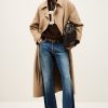 The ba&sh KATE coat is a key piece this season. This long coat has minimalist style, a shirt collar, slightly dropped shoulders, and piped pockets. It hits below the knees. It’s made in a double-sided wool clothand it has a tie belt in the same fabric that slips through golden grommets at the waist. A coat with chic and streamlined style that’s enhanced with a pretty feminine detail. This piece is crafted with LENZING ECOVERO viscose, a fiber made from wood pulp sourced from sustainably managed forests. LENZING and ECOVERO are trademarks of Lenzing. – Long coat- Shirt collar- No buttons- Tie belt- Back slit- 80% wool, 20% polyamide