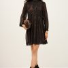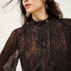 – Loose fit- Iconic ba&sh print- Stand-up collar with offset button- Front bib (plastron)- Long loose sleeves- Pleated seams under the chest- Gathers emanating from the pleatThe viscose in this model is made from wood pulp from sustainably managed forests.