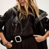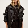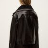 – Seams on the front- Black ribbed trim on the inside of the collar- Super high stand-up collar- Zippered cuffs- Shiny, slightly cracked leather- Zipper in the front middle, hidden by a leather tab- Boxy cutThis product was made from leather from a tannery certified according to the Leather Working Group protocol.