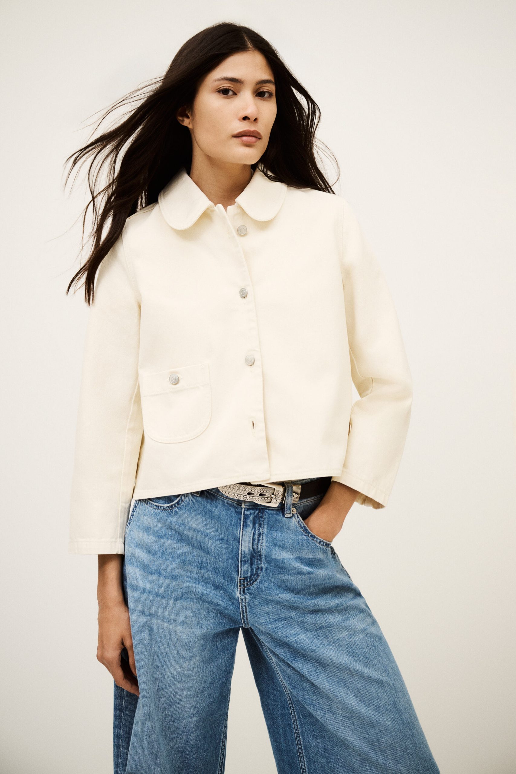 – 3/4 sleeves- Peter Pan collar- Contrasting topstitches- Patch pocket in frontThe cotton fibers in this model come from organic farming.