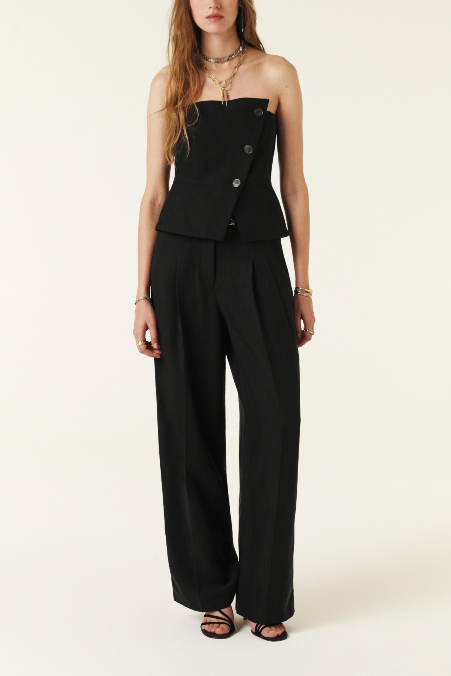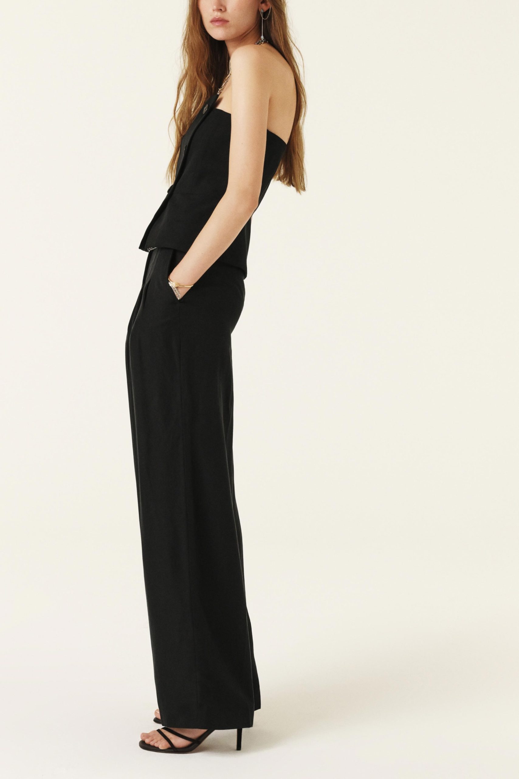 – Loose-fitting pants- High waist- Flowing- Inspired by men’s styles- Broken pleats Real Pockets – Wide, ultra-comfortable legsThe viscose in this item is made with wood pulp derived from sustainably managed forests.