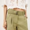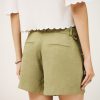 – Short flared shorts- Pleated details- Round pockets- Piped pockets on the back- Topstitched belt with metal buckleThis model contains recycled synthetic fibers.