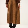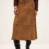 – High, fitted waist- Slightly flared with a godet style base- 5-pocket jeans style design- Double topstitches- Raw edges- Suede materialThis product was made from leather from a tannery certified according to the Leather Working Group protocol.