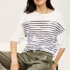 – Loose fit- Boat neck- Vintage style sailor stripes on the front and back- Half-sleeves- Supima cotton- Extremely soft to the touchThe cotton fibers in this model come from organic farming.